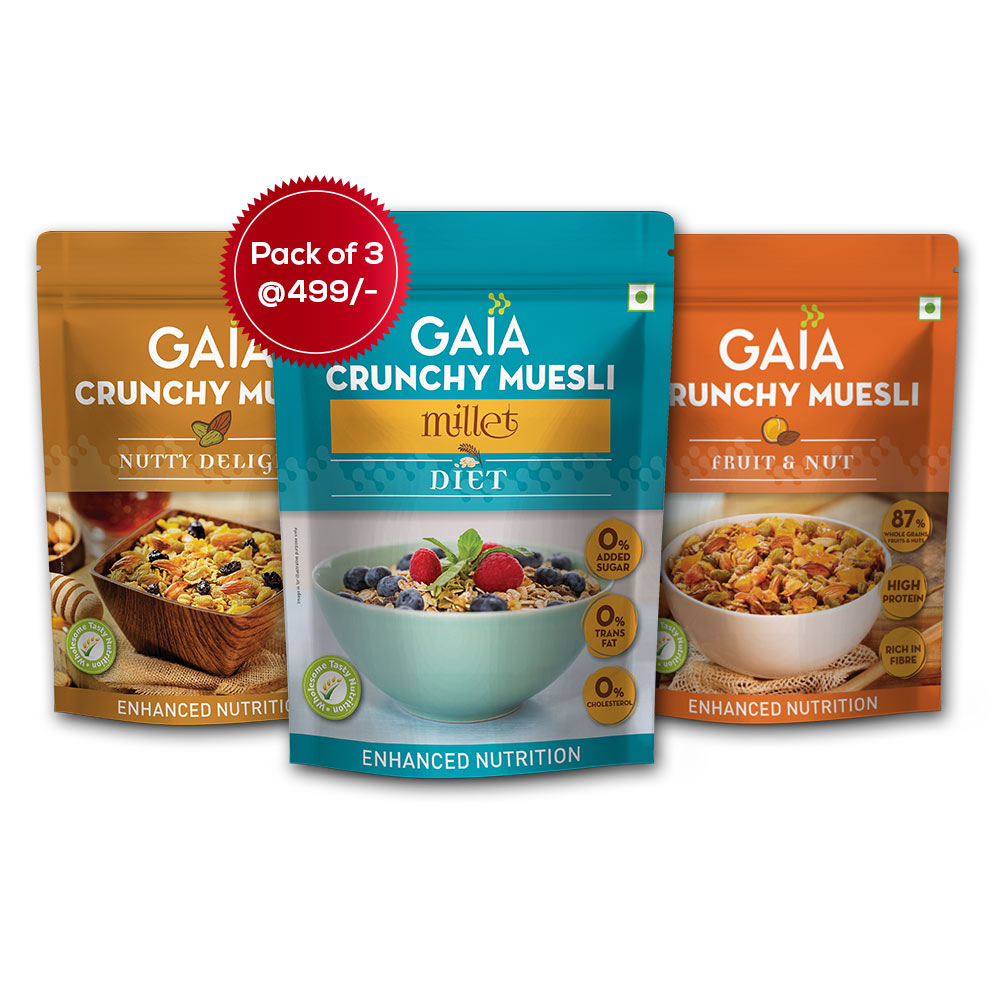 With crunchy almonds and sweet raisins, it’s a delicious way to start your morning. Enjoy it with milk, yogurt, or honey for a vibrant and energizing start to your day. https://www.gaiagoodhealth.com/product/crunchy-nutty-delight-muesli-375gm/